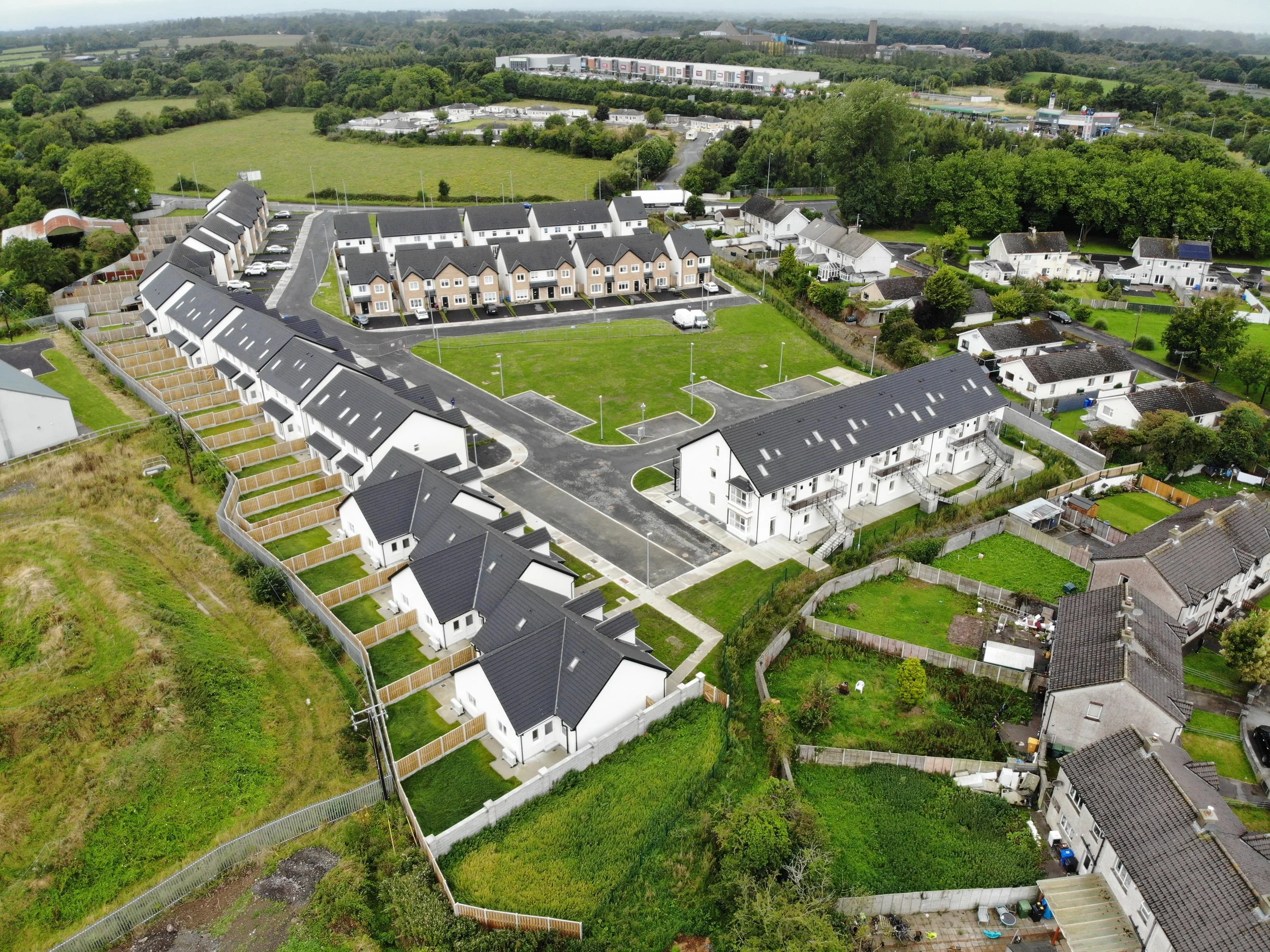 Completed 2024 - A 66 unit development delivered through a combination of timber-frame and traditional build. Phase 1 was handed over to Respond AHB with tenants occupying these A-rated homes from early 2023, with the remaining units completing in mid-2024.